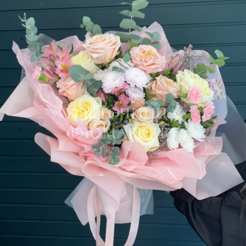 Сборный букет из нежный пионовидных роз