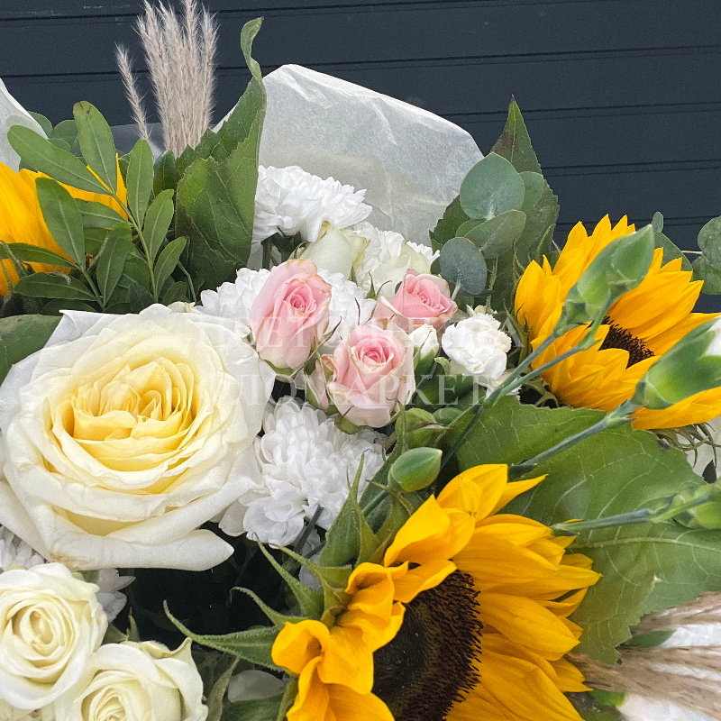 Букет Сборный из роз и хризантем « Маршмэллоу»