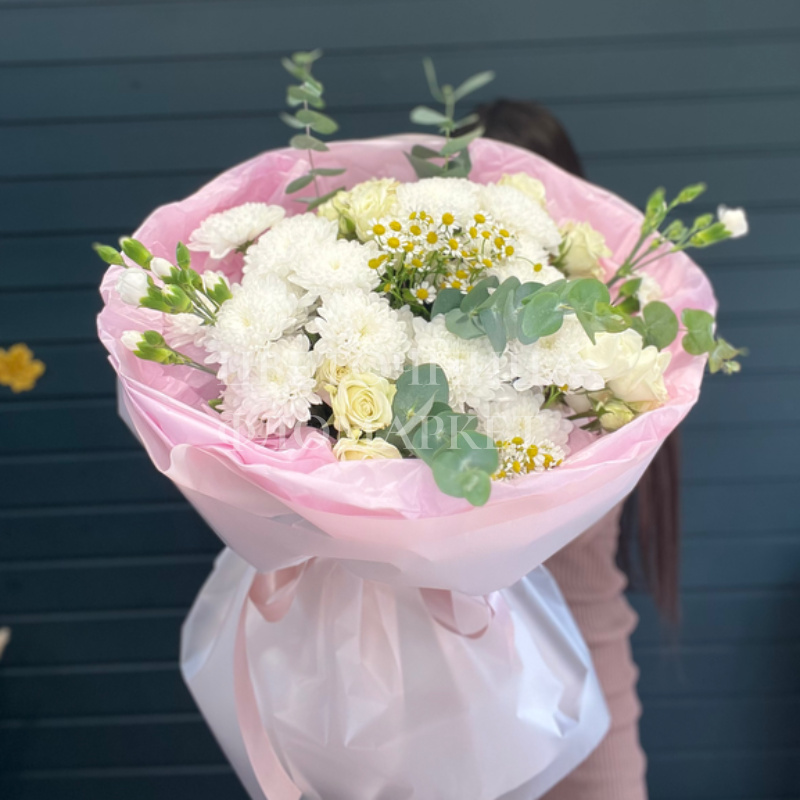 Сборный букет из хризантем и роз