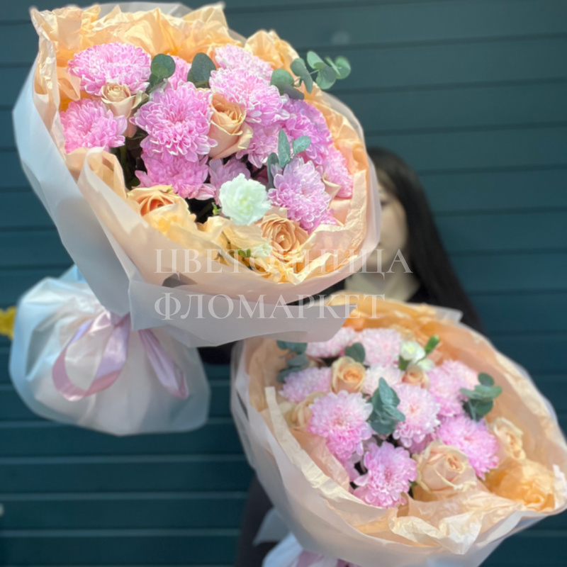 Букет из розовых хризантем и роз