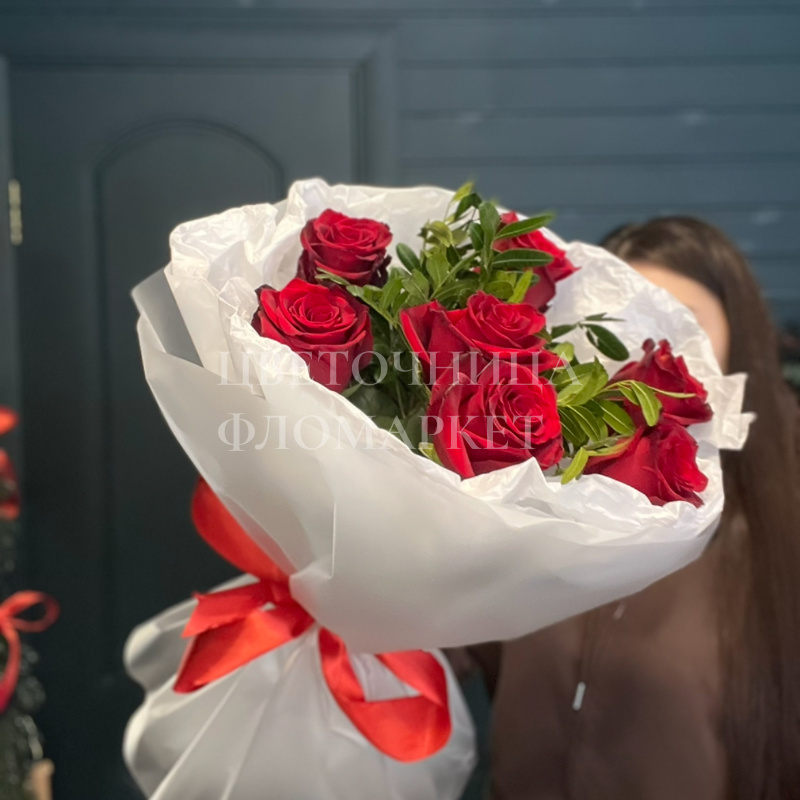 Букет, достойный самых светлых и искренних чувств! Яркие алые розы, элегантно задрапированные в белую упаковку с акцентной красной лентой, создают эффектный и романтичный образ. Этот классический букет станет прекрасным выражением любви и внимания.