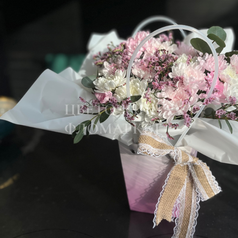 Сумочка из хризантем и эвкалипт