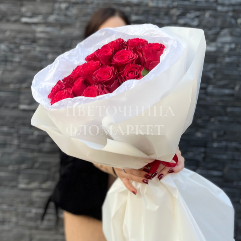 ХИТ ПРОДАЖ! Букет из красивых красных роз в белом оформлении